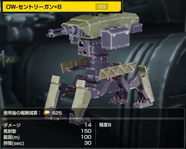 ②OW-セントリーガン:ミッション8クリアで開放(設置兵器)