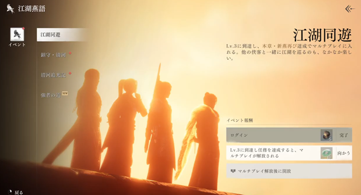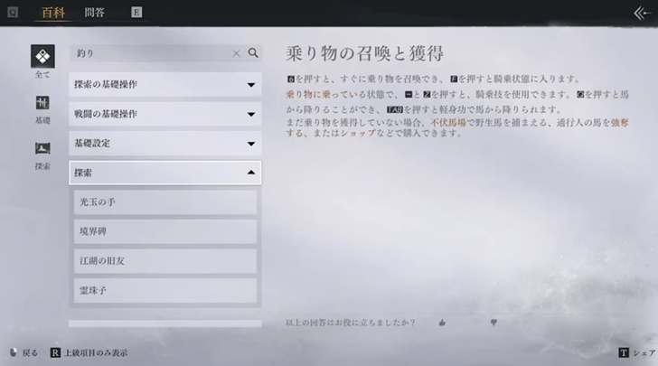 (追記)流派というギルドとかではないゲーム内の世界に存在する武術的な意味合いの流派が存在しており、別に入らなくても問題ないけど、入ると色々ある。私は入ったものの特に何もすることなく終わったけど、流派によって面倒なノルマが課せられる。私はそういうのが厳しくない流派に入ったけど、ノルマって響きが嫌ならそもそも入らなくても問題ない。入ってポイントを貯めるとアイテムが交換出来たりした。流派もやり込めば何か見えてくるのかもしれない。